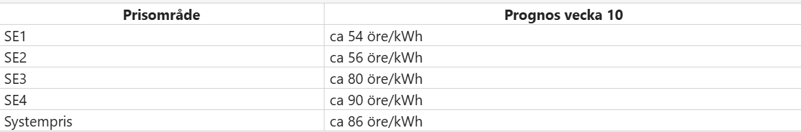 Den stora skillnaden mot tidigare veckor är dock att kraftigt stigande gas- och bränslepriser efter krigsutbrottet i Mellanöstern nu överskuggar väderpåverkan. Därför ser vi inte den tydliga prisnedgång som annars hade varit rimlig vid mildare väder.