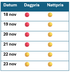 📅 Spotprisöversikt kommande veckan (relativt pris, högst indikativt)